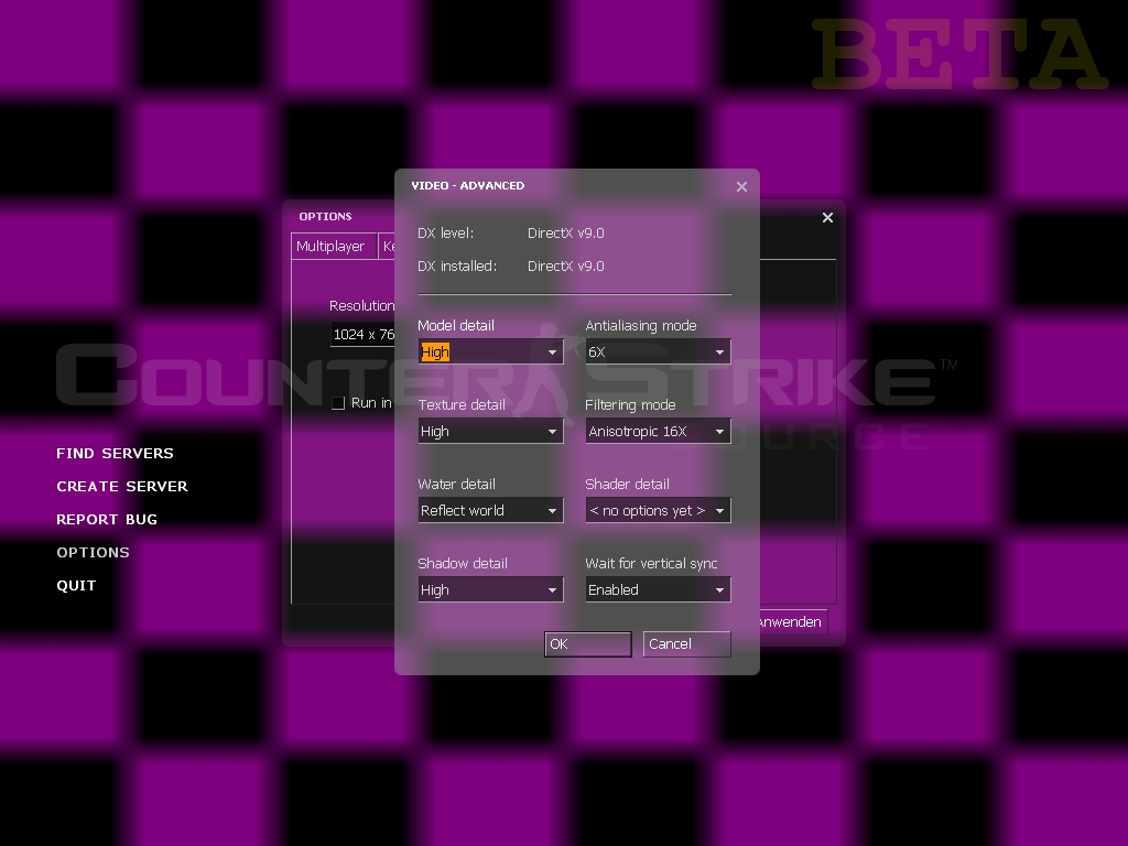 Starte mal CS:S gehe in die Options, Video und dann auf Advanced...